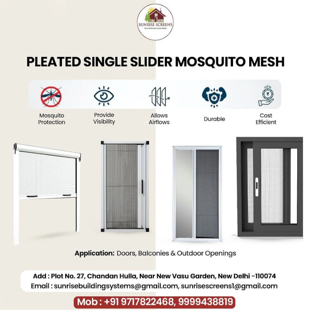 Bangalore experiences hot summers and monsoon humidity—ideal conditions for mosquitoes and flying insects. Pleated mesh screens offer a breathable and retractable solution that enhances air circulation while keeping pests out.