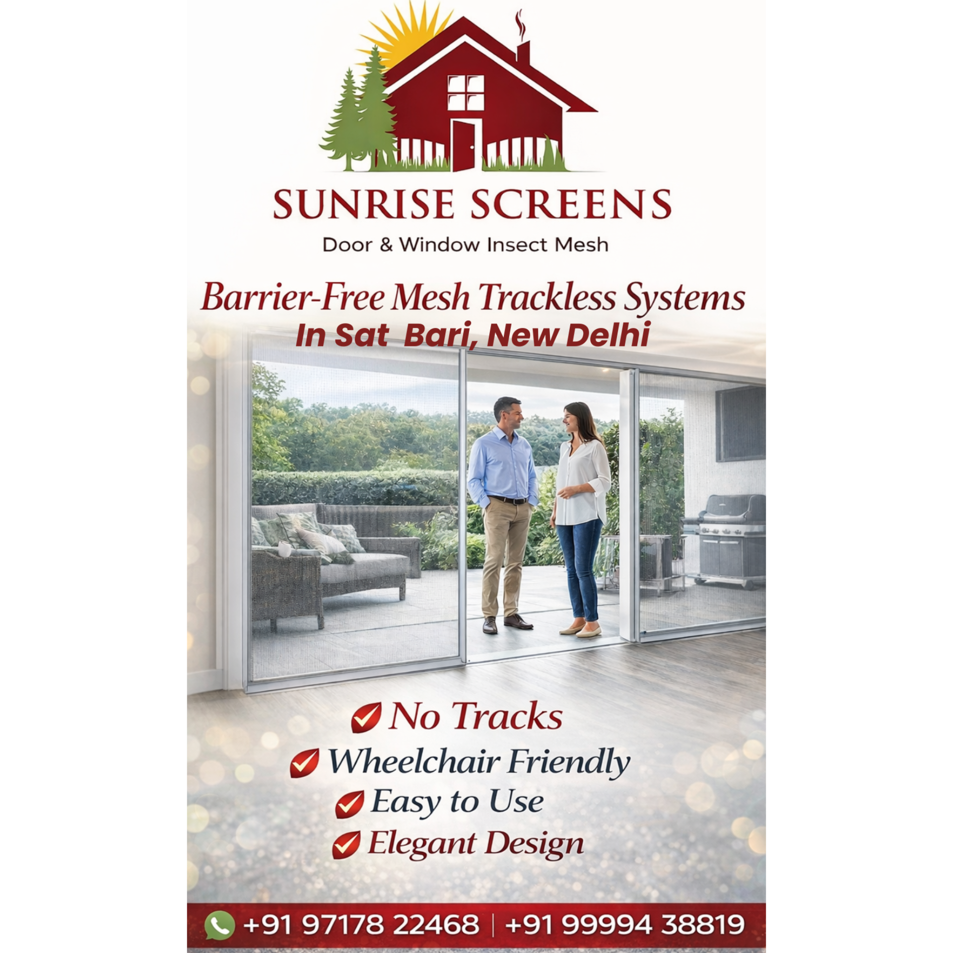 These systems create an unobstructed walkway and blend beautifully into contemporary interiors. For installation of the best barrier-free mesh trackless systems, call or visit us in New Delhi today.
