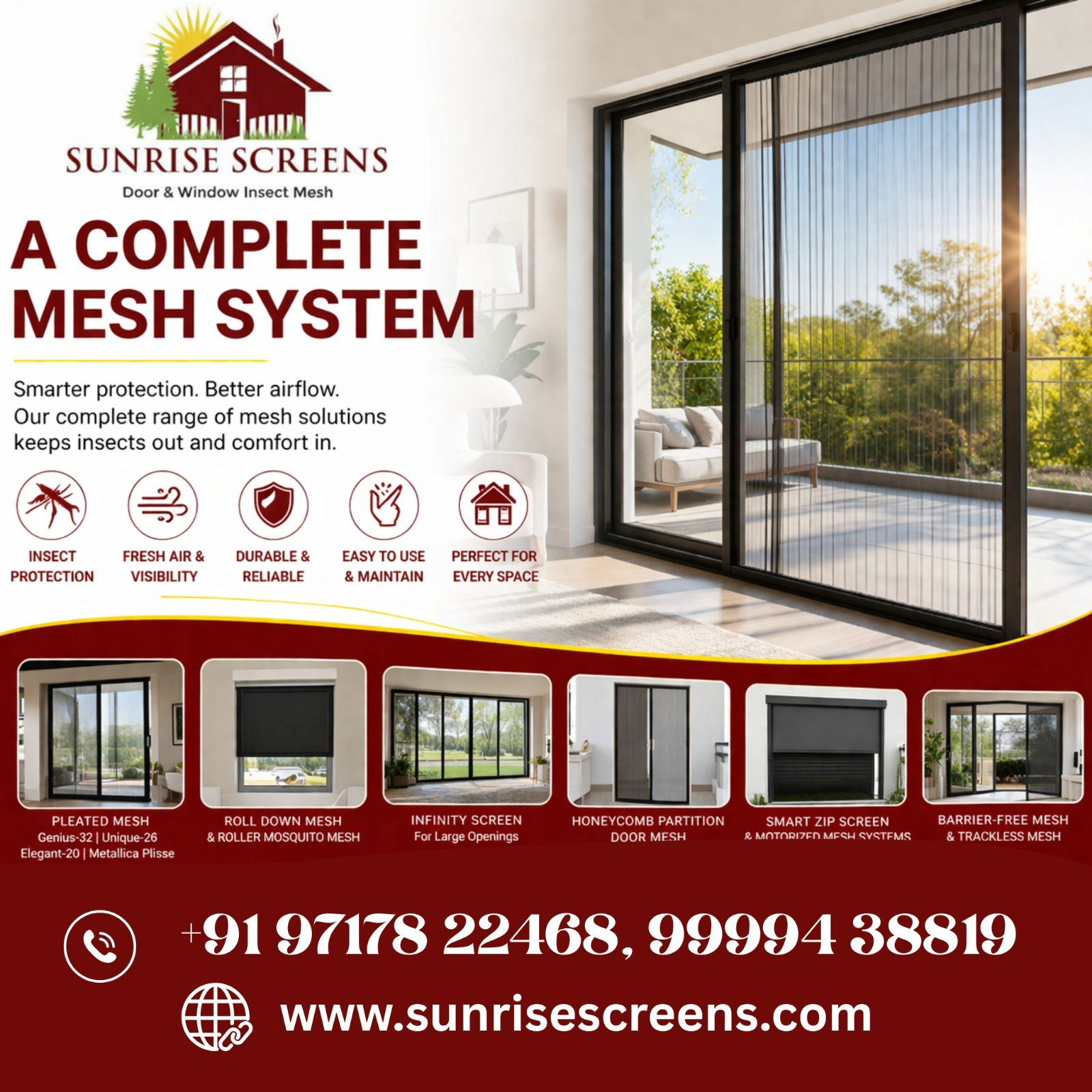 India’s growing demand for modern living has made advanced mesh solutions an essential part of every home and commercial space. From barrier-free mesh and pleated systems to roll-down and motorized zip screens, today’s solutions are designed for protection, ventilation, and style. These systems effectively block mosquitoes, dust, and insects while allowing fresh air and natural light, making them a healthier alternative to chemical repellents .