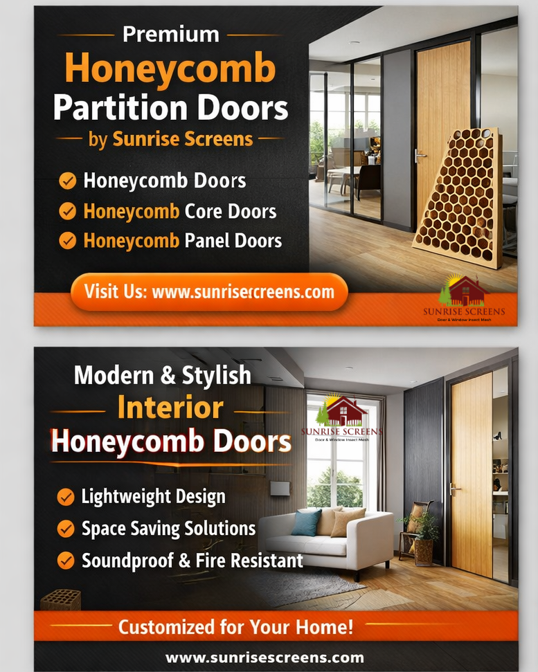 Sunrise Screens is a trusted provider of premium Honeycomb Partition Doors in Mumbai, offering advanced and durable door solutions for residential, commercial, and industrial spaces. Our high-quality Honeycomb Doors in Mumbai are designed for lightweight strength, modern aesthetics, and long-lasting performance.